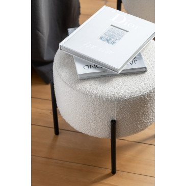 Tabouret Boucle Contreplaque/Polyester Blanc/Noir