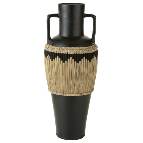 Vase Motifs+Anses Terracota/Herbes Noir/Naturel